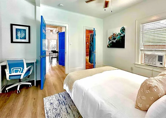 Welcome to the exquisite Luxury 1 Bd Montrose - Genova At The Italian Plaza, a refined sanctuary nestled in the enchanting heart of Houston. Just 25 kilometers from William P. Hobby Airport, this villa offers unparalleled convenience for discerning travelers. Its prime location places guests a mere 2.5 kilometers from the bustling Ensemble/HCC, allowing for easy access to cultural attractions and vibrant entertainment.